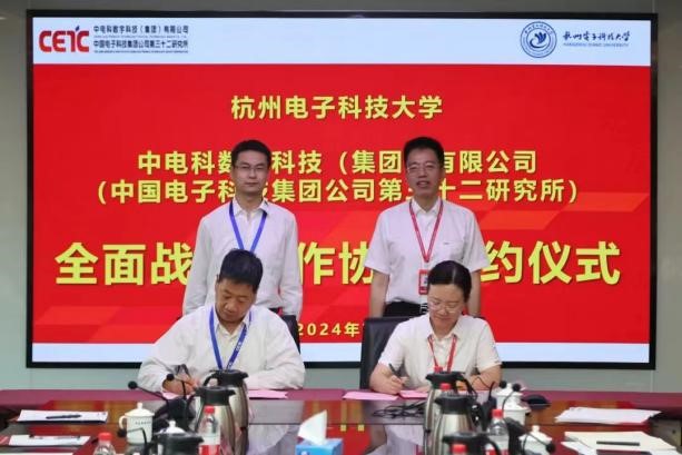 7月5日,我校与32所举行全面战略合作签约仪式。校党委书记吴卿,电科数字党委书记、董事长,32所党委书记江波出席并见证签约。据了解,我校与32所于2018年签订战略合作协议以来,取得了一系列合作成果,为深化合作奠定了坚实基础。面向未来,双方将在科技创新、人才培养、科技成果转化、应用及技术交流等领域迈出坚实步伐,共同开启校企合作新篇章。我校副校长马国进、32所副所长柴小丽代表双方签署战略合作协议。
